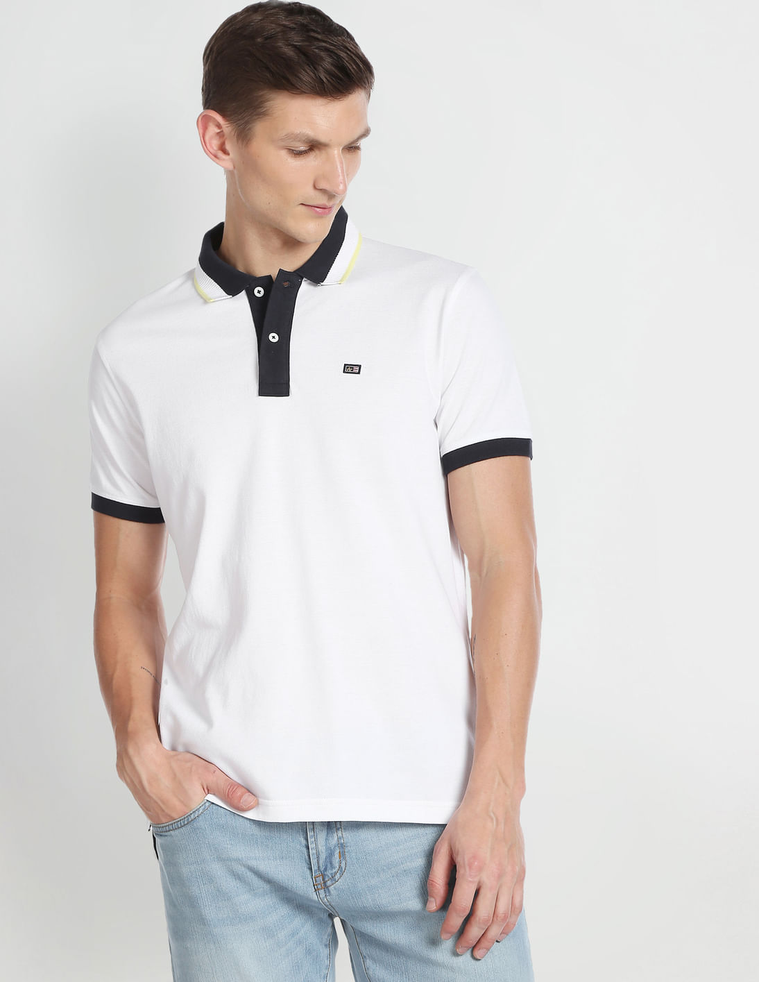 Contrast Collar Solid Polo Shirt