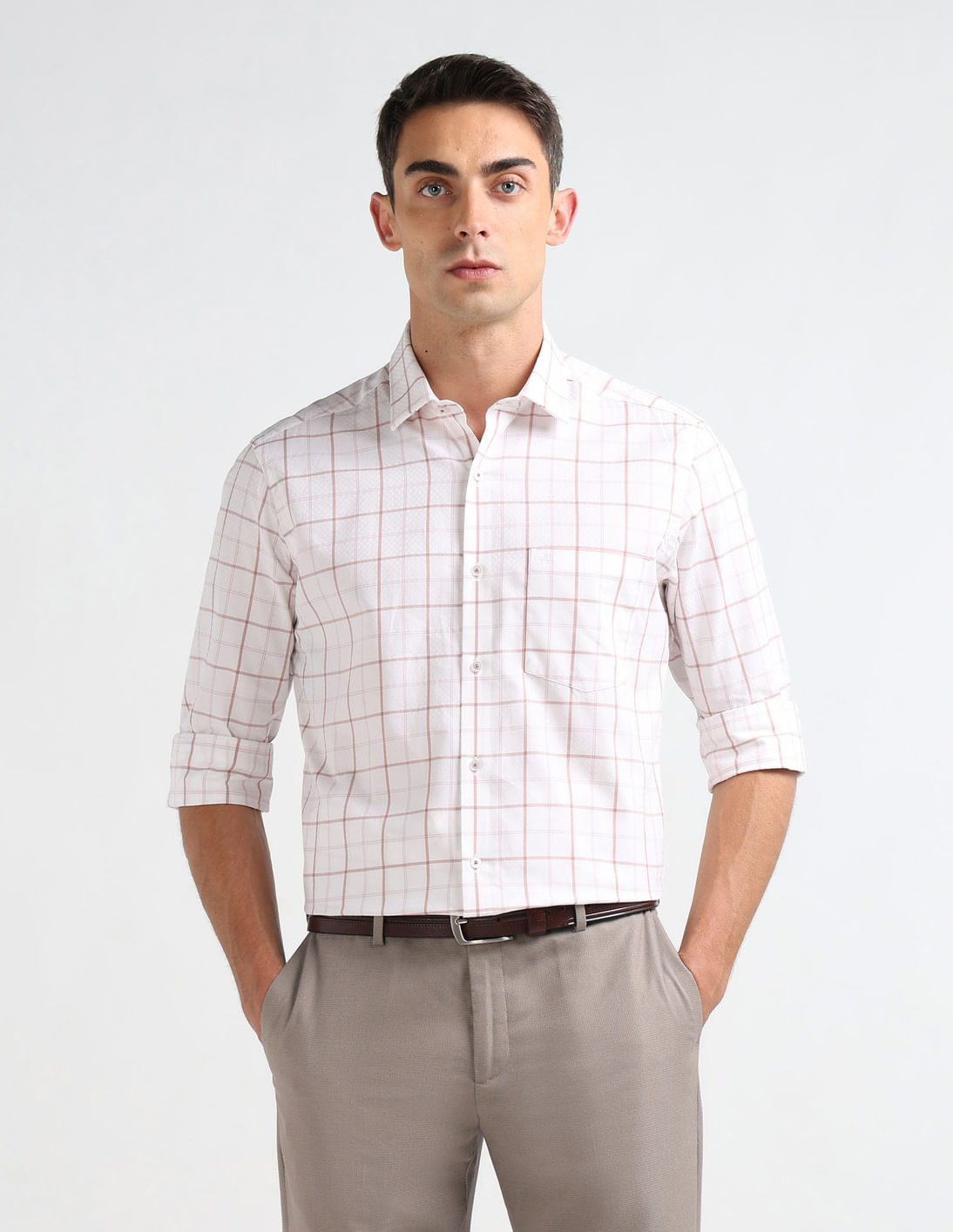 Windowpane Checked Manhattan Slim Fit Shirt