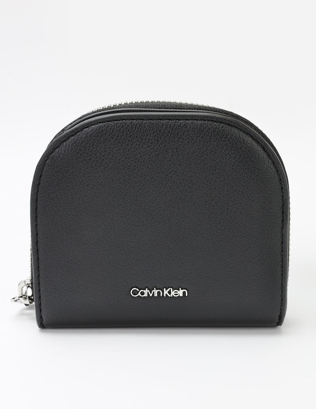 Solid Black Pu Zip-Around Wallet