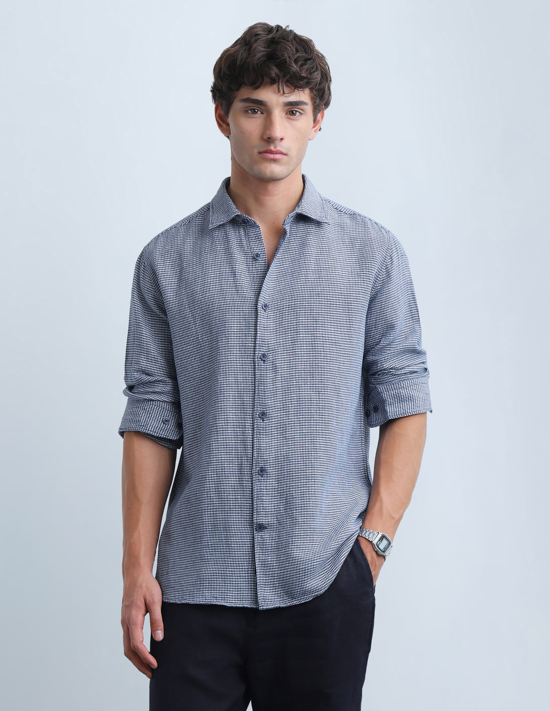 Self Design Houndstooth Slim Fit Shirt