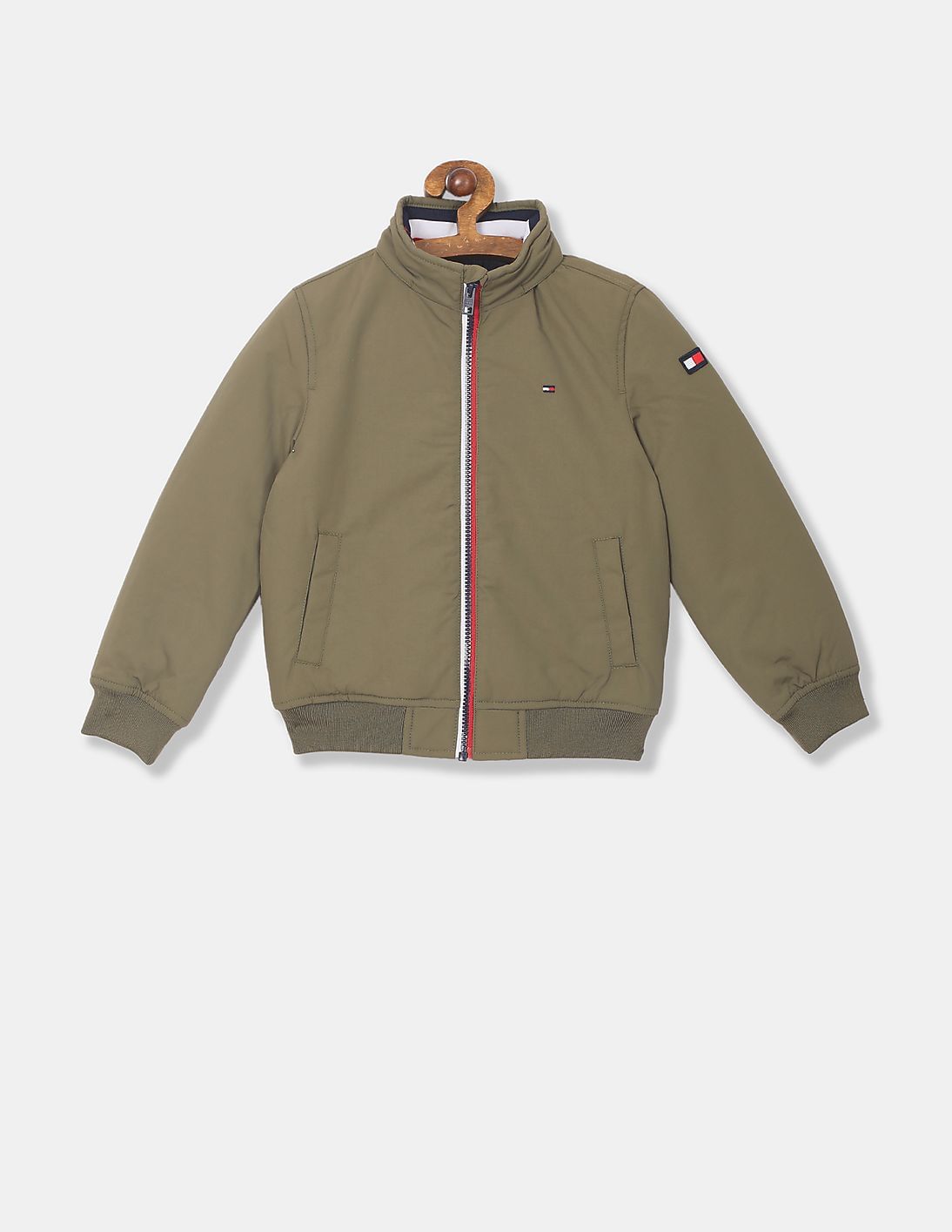 Boys Olive High Neck Zip-Up Bomber Jacket
