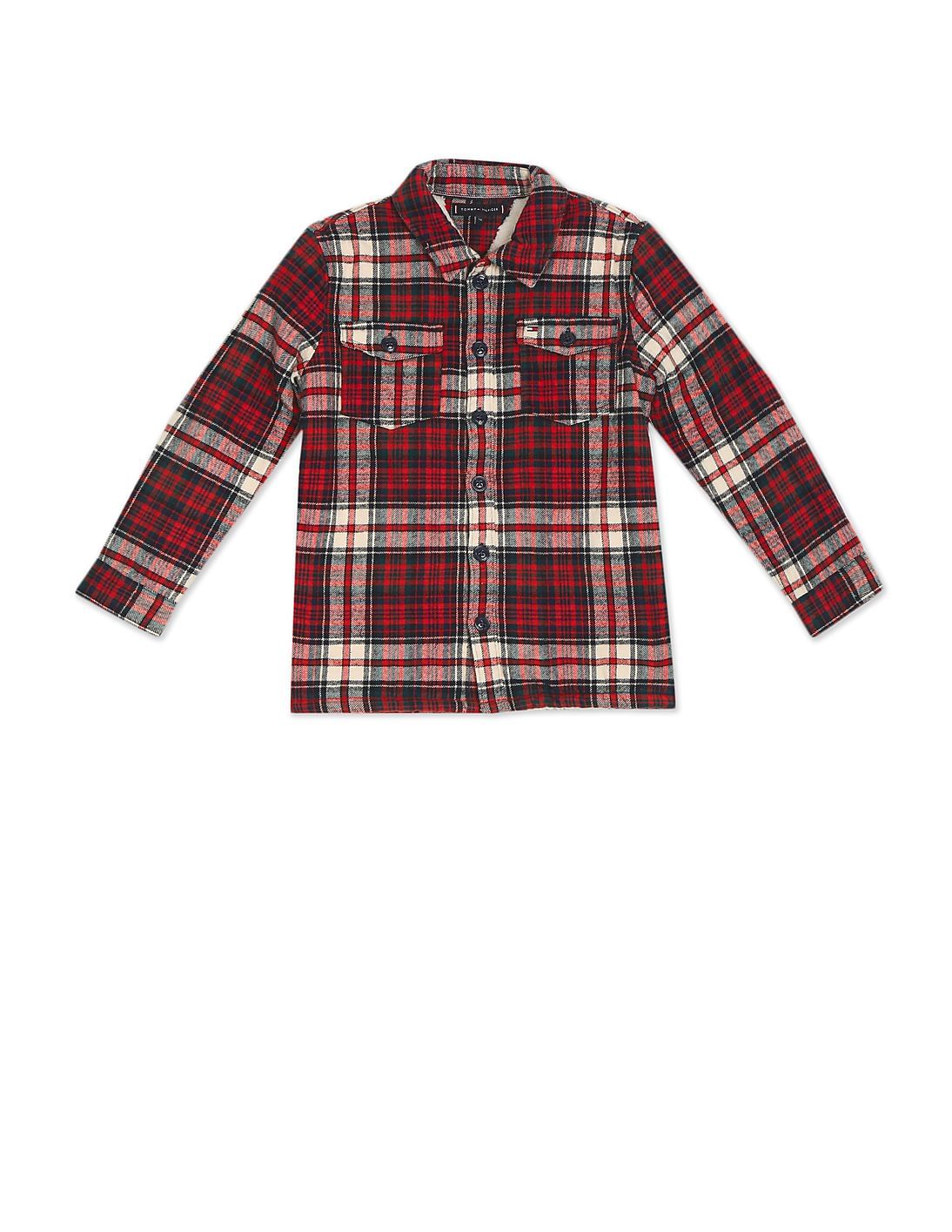 Boys Red Checked With Two Chest Patch Pockets Jacket