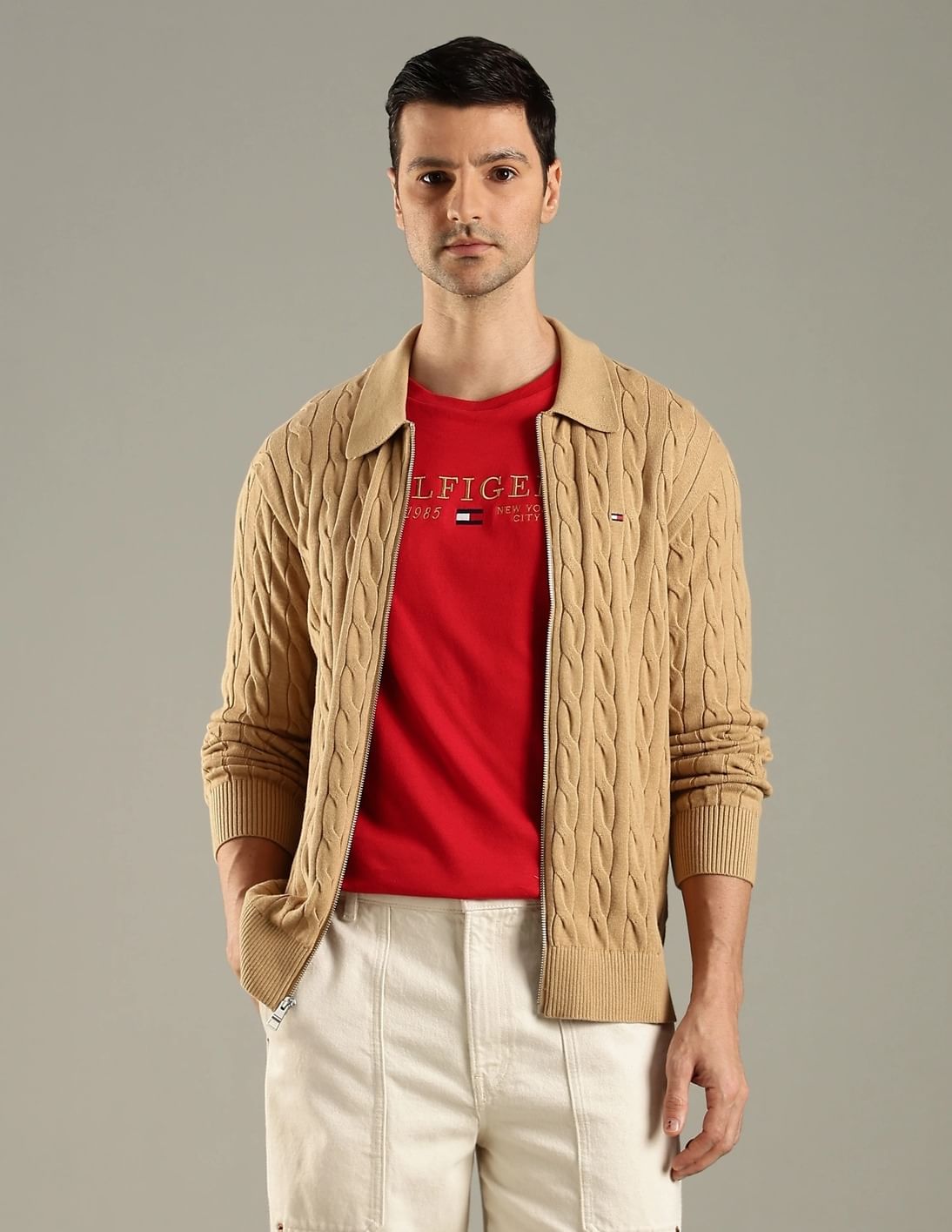Cable Knitted Regular Fit Cotton Jacket