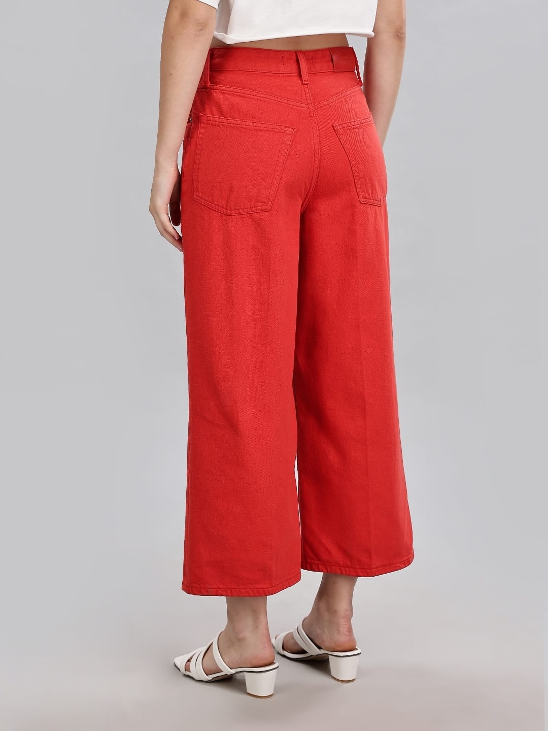 Cotton Wide Leg-Fit Mid Rise Jeans