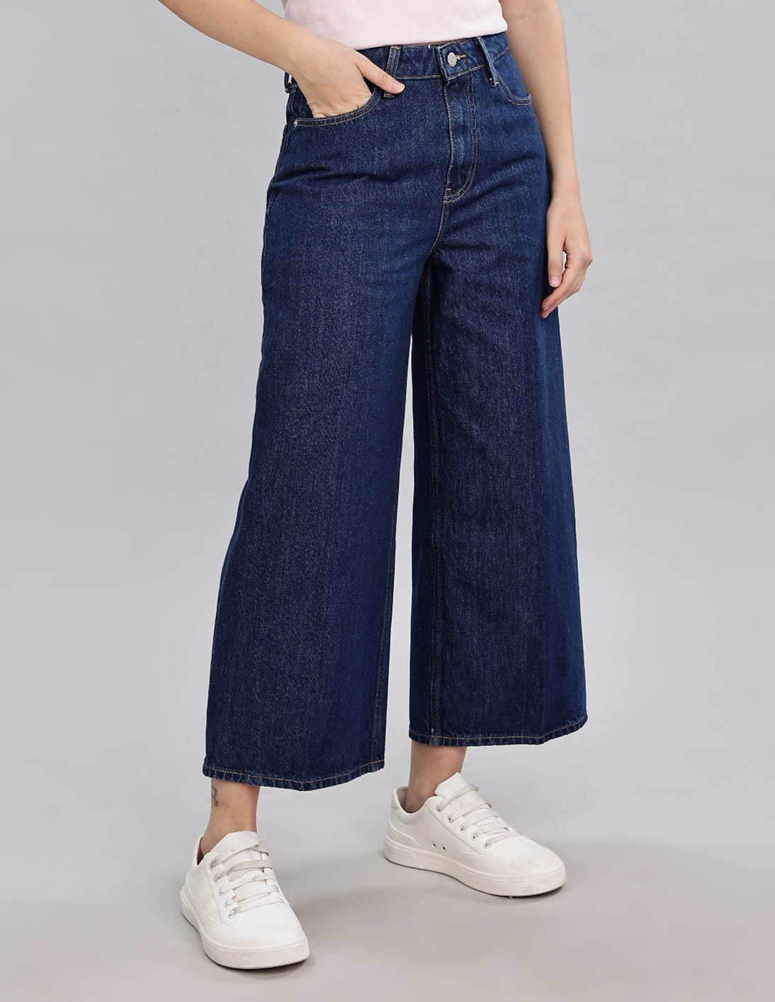 Cotton Wide Leg-Fit Mid Rise Jeans