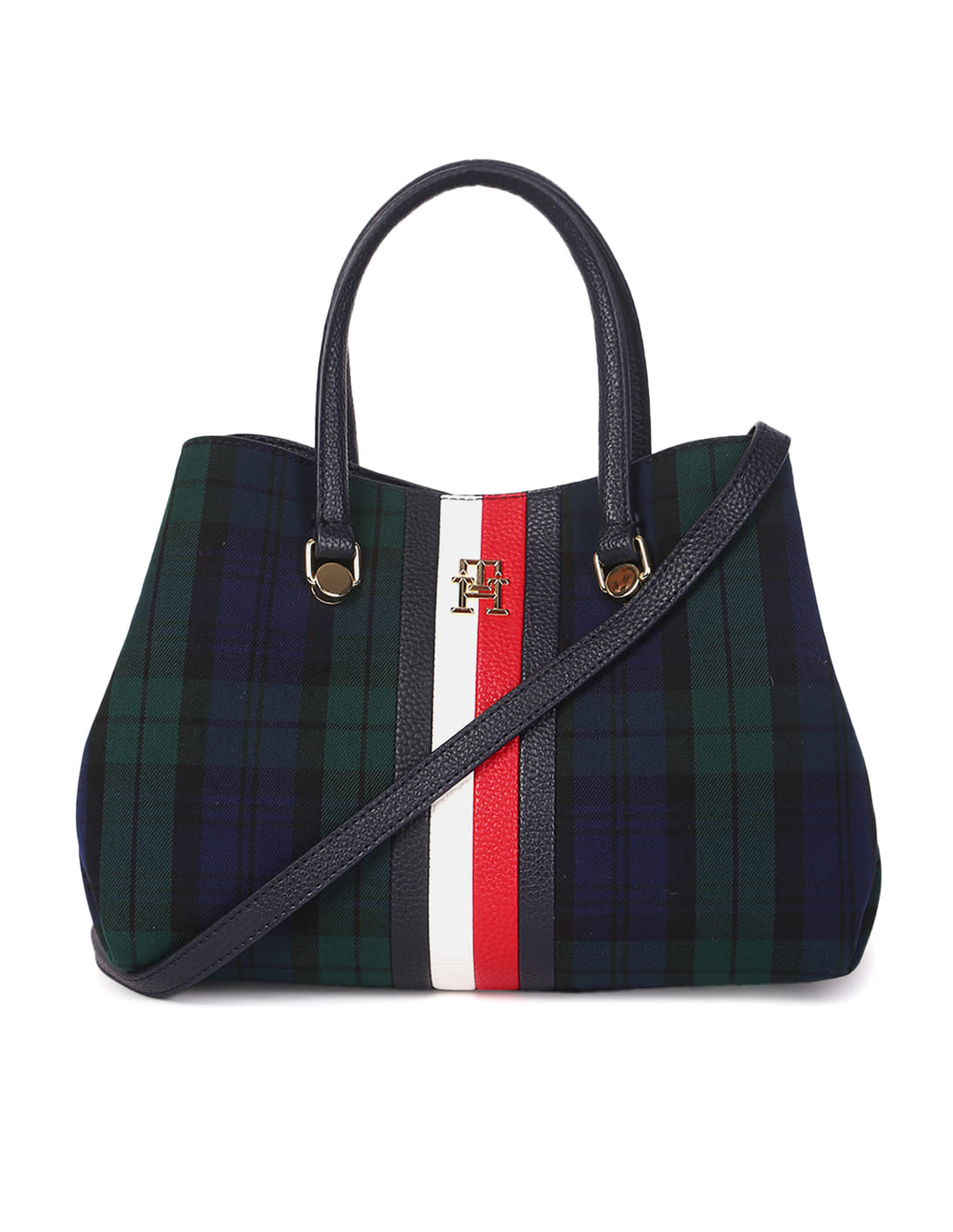 Emblem Plaid Check Satchel Bag