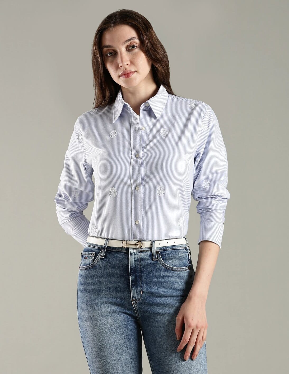 Embroidered Logo Relaxed Fit Cotton Shirt