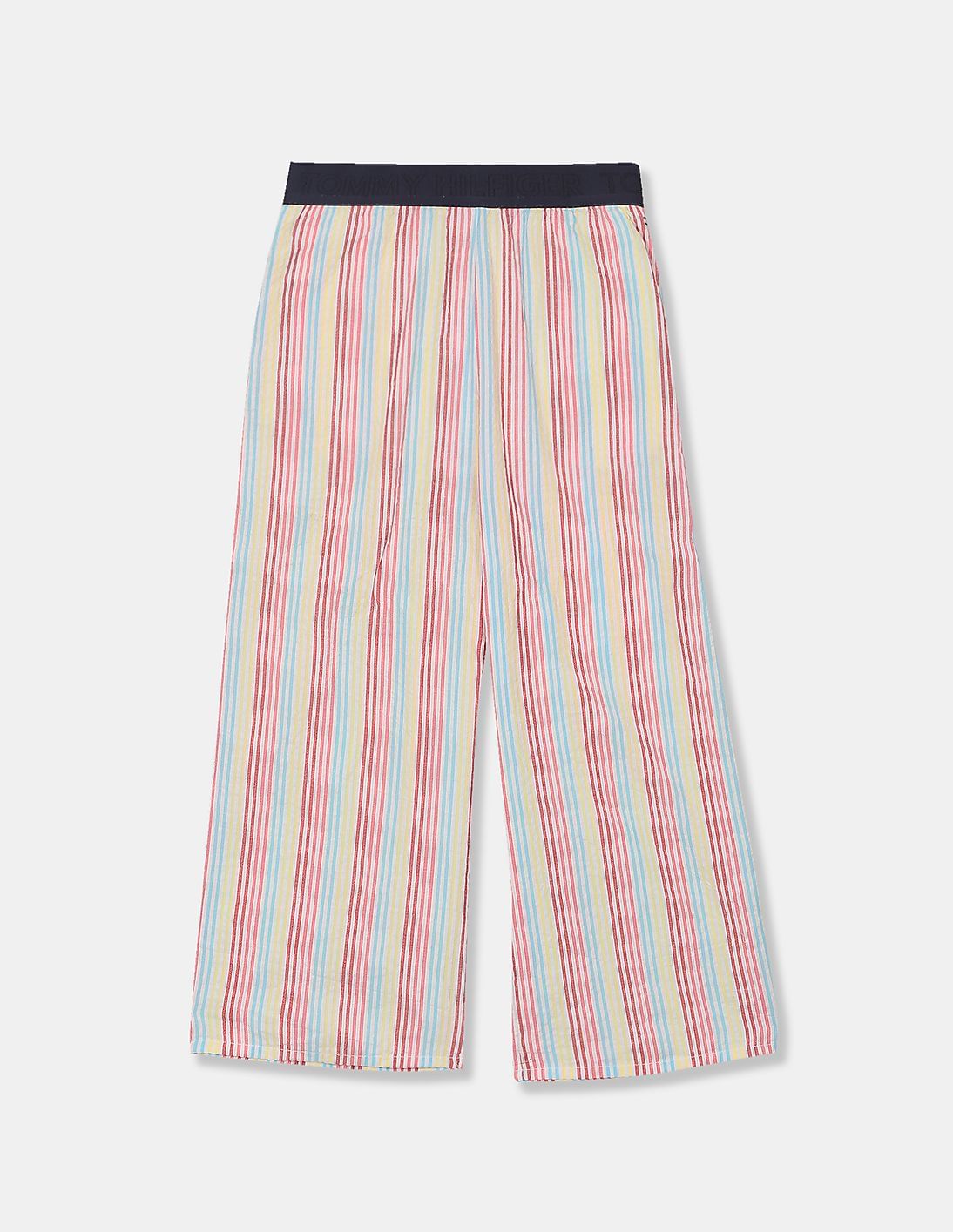 Girls Multi Colour Elasticized Waist Seersucker Stripe Pants