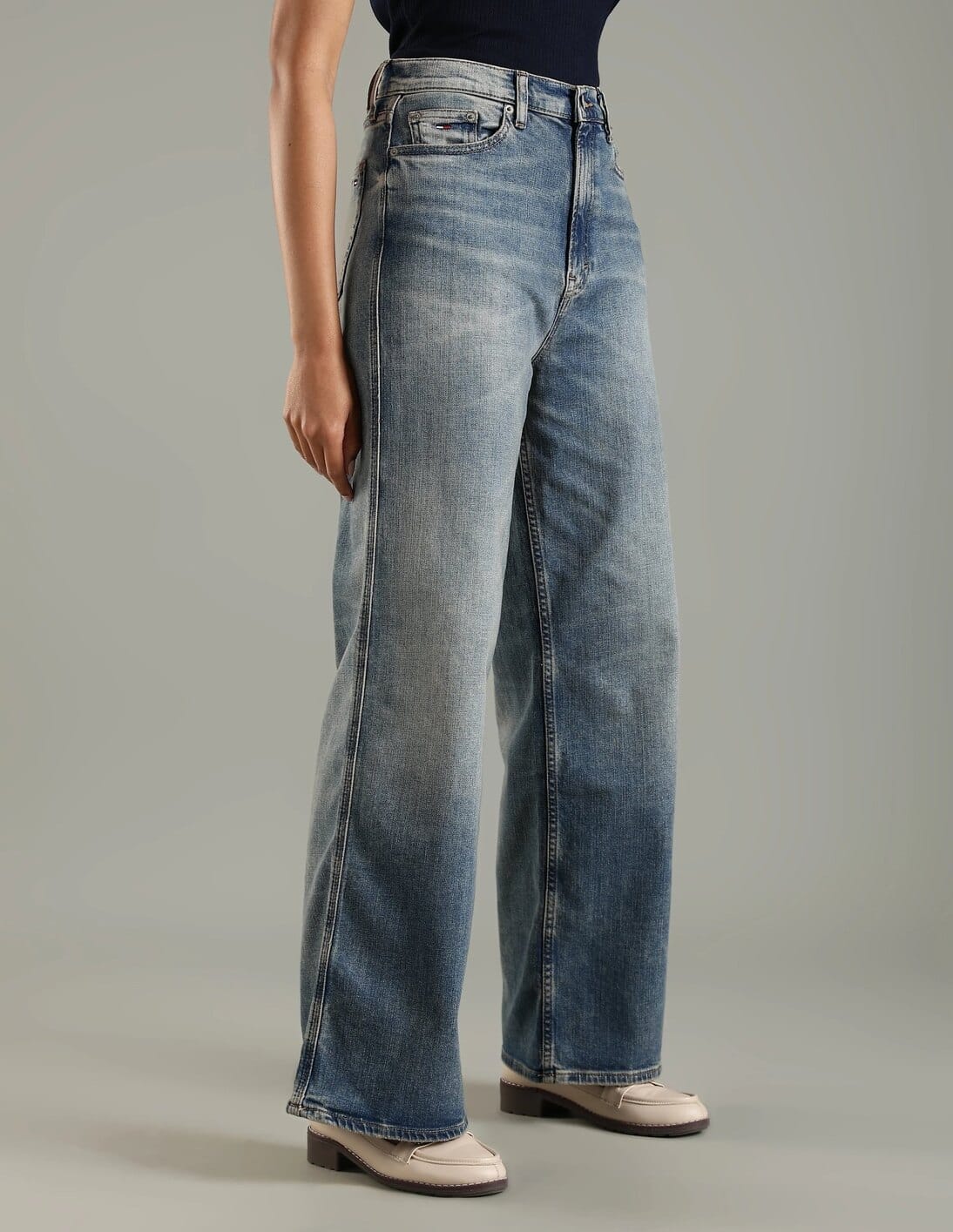 Heavy-Wash Wide Leg Fit High Rise Jeans