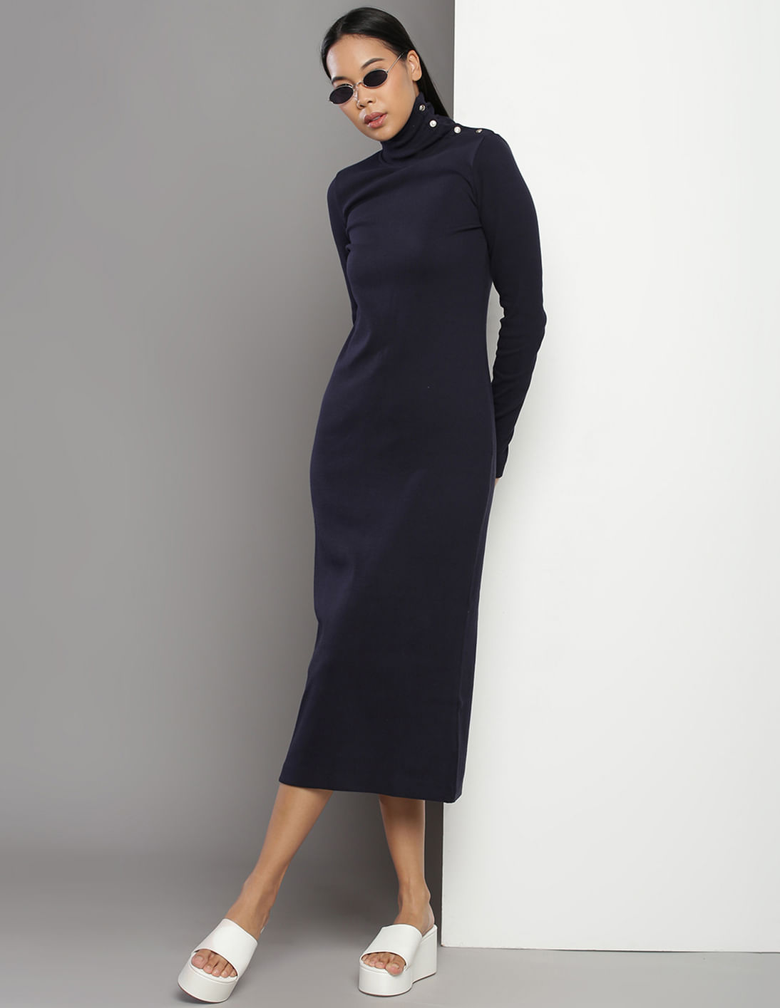 High Neck Long Sleeve Bodycon Dress