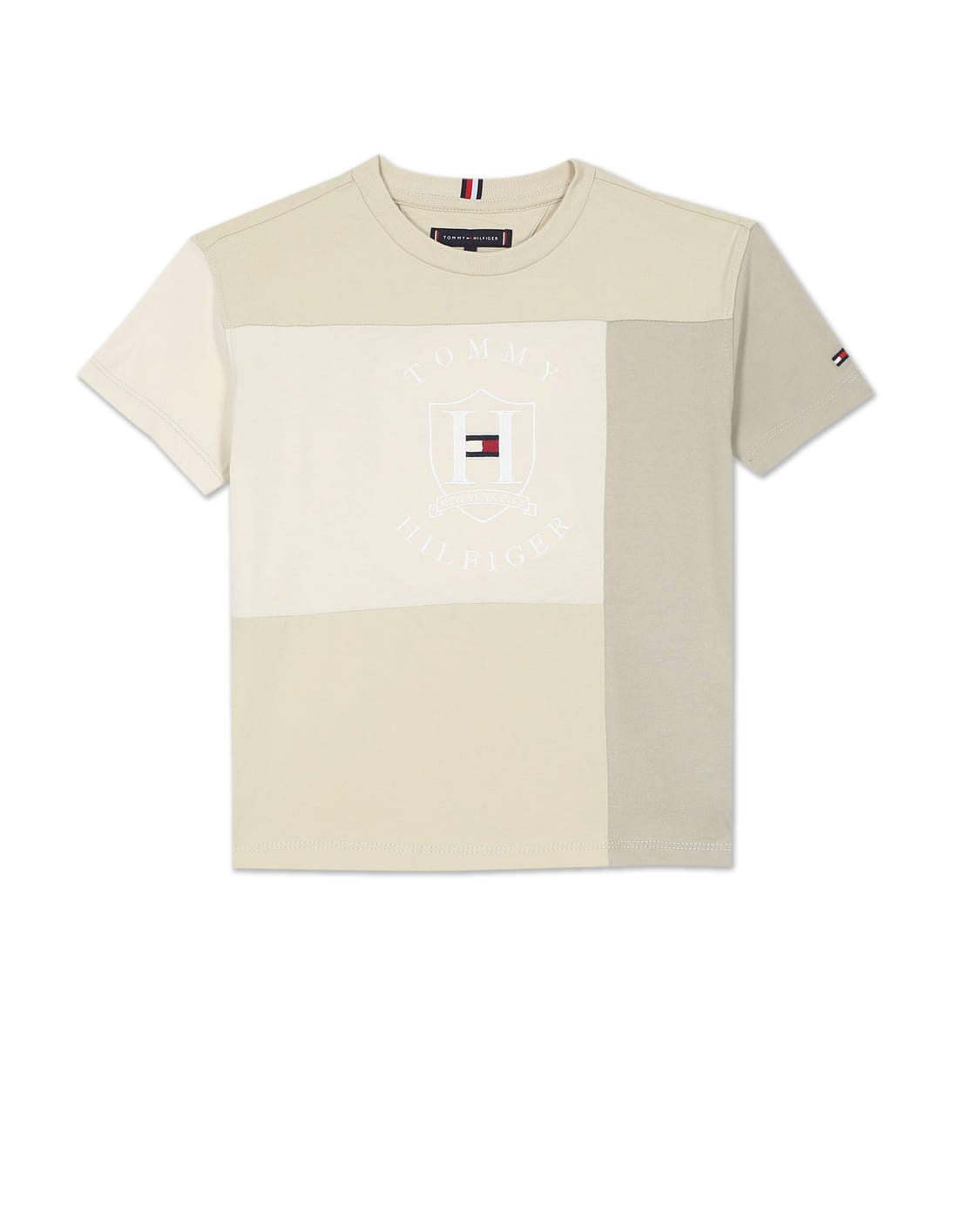 Boys Beige Crew Neck Cut Panel Cotton Icon T-shirt