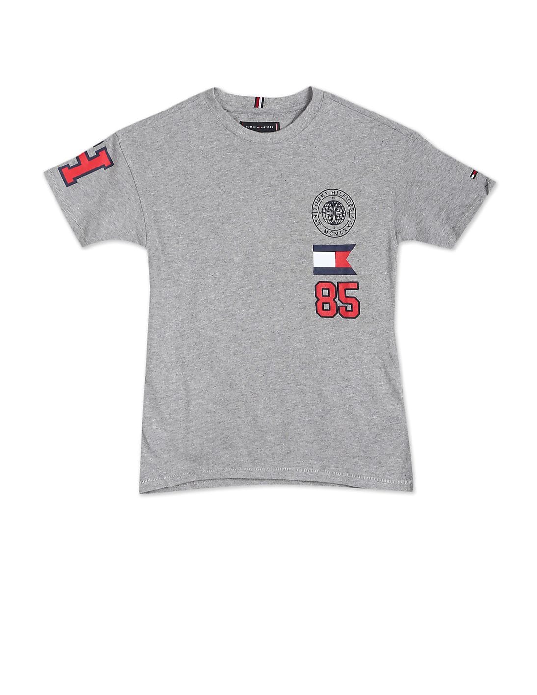 Boys Grey Crew Neck Printed T-Shirt