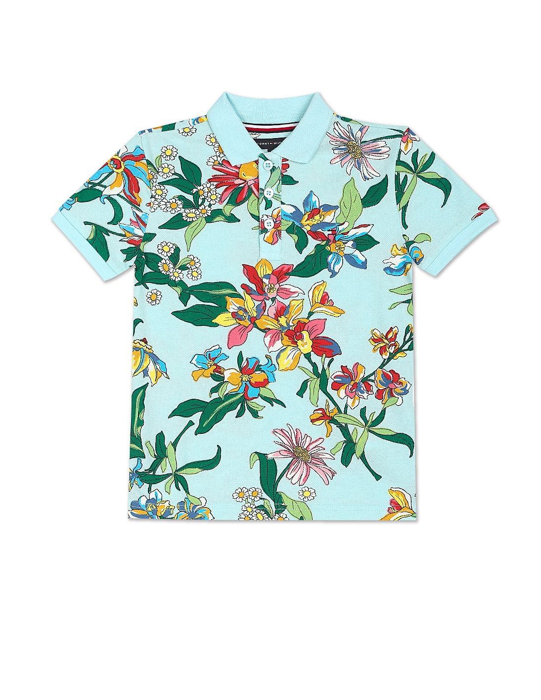 Boys Light Blue Regular Fit All Over Print Polo Shirt