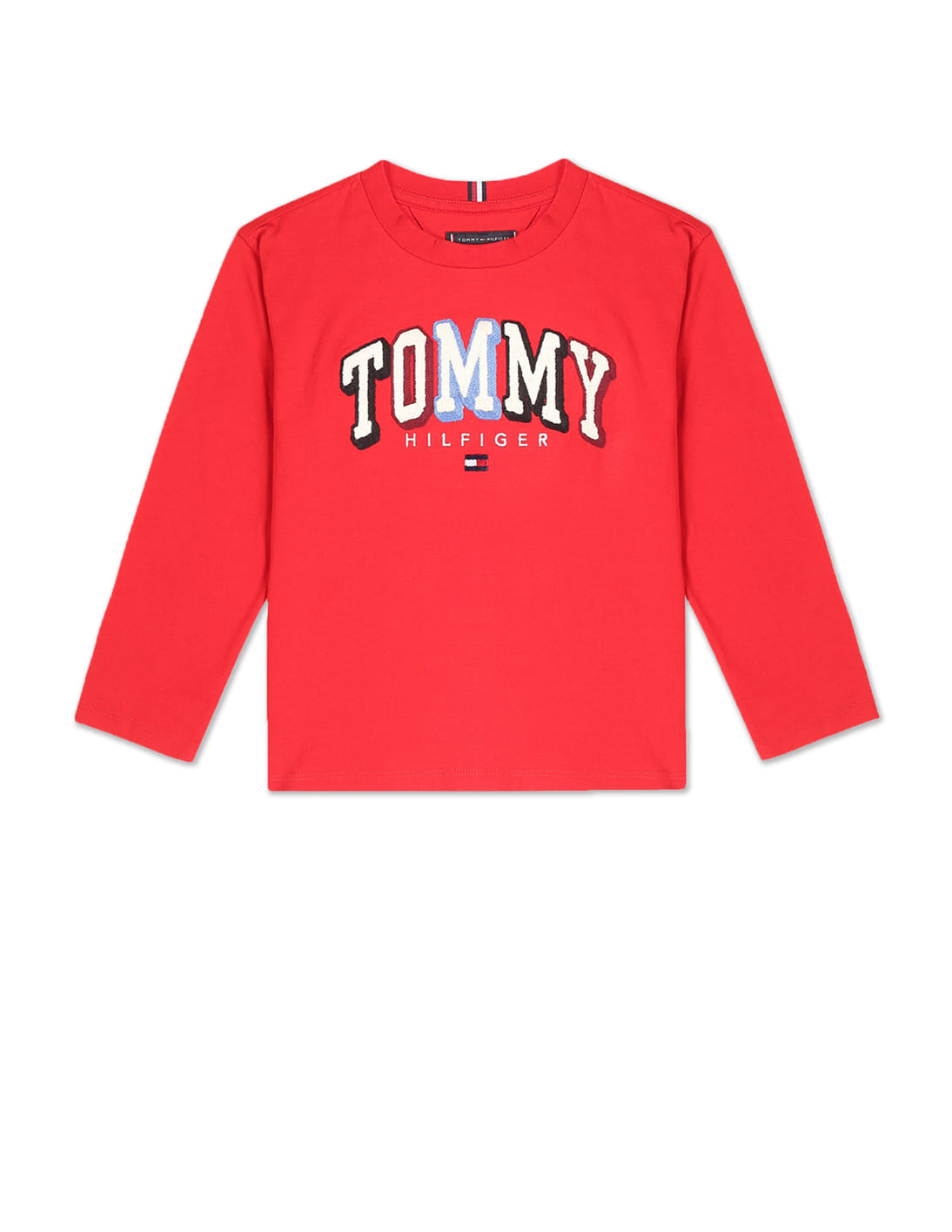 Boys Red Chain Stitch Logo Cotton T-Shirt