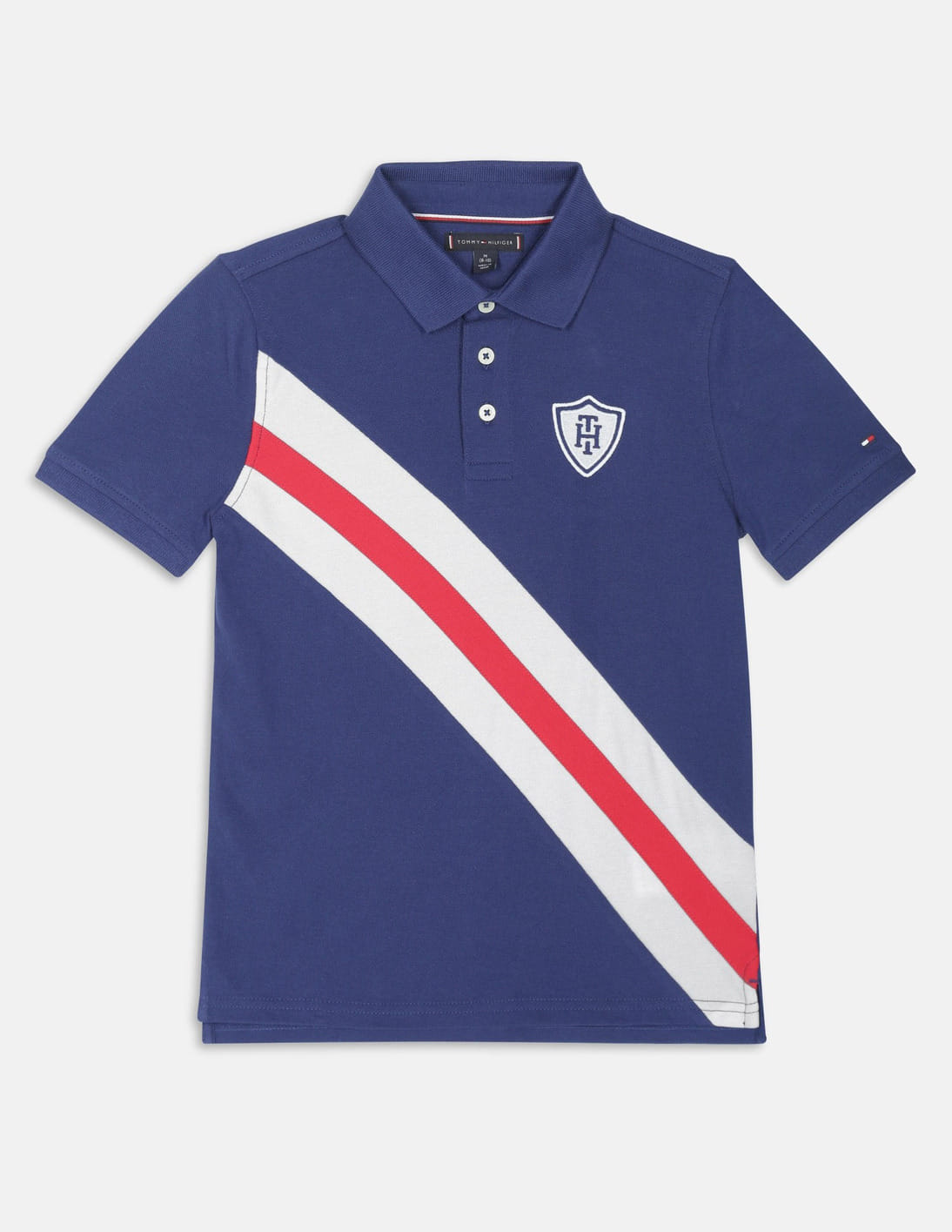 Boys Striped Regular Fit Cotton Polo T-Shirt