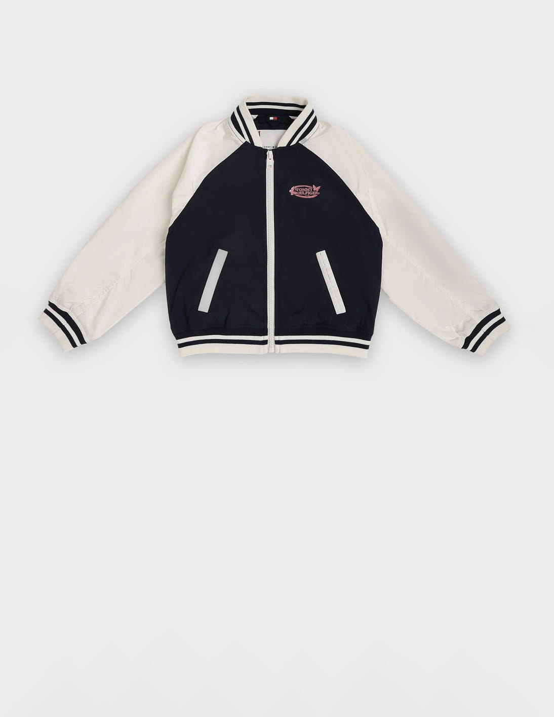 Girls Relaxed Fit Nylon Baseball Collar Bomber Jacket
