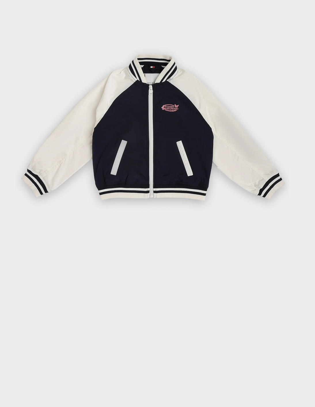 Girls Relaxed Fit Nylon Baseball Collar Varsity Jacket