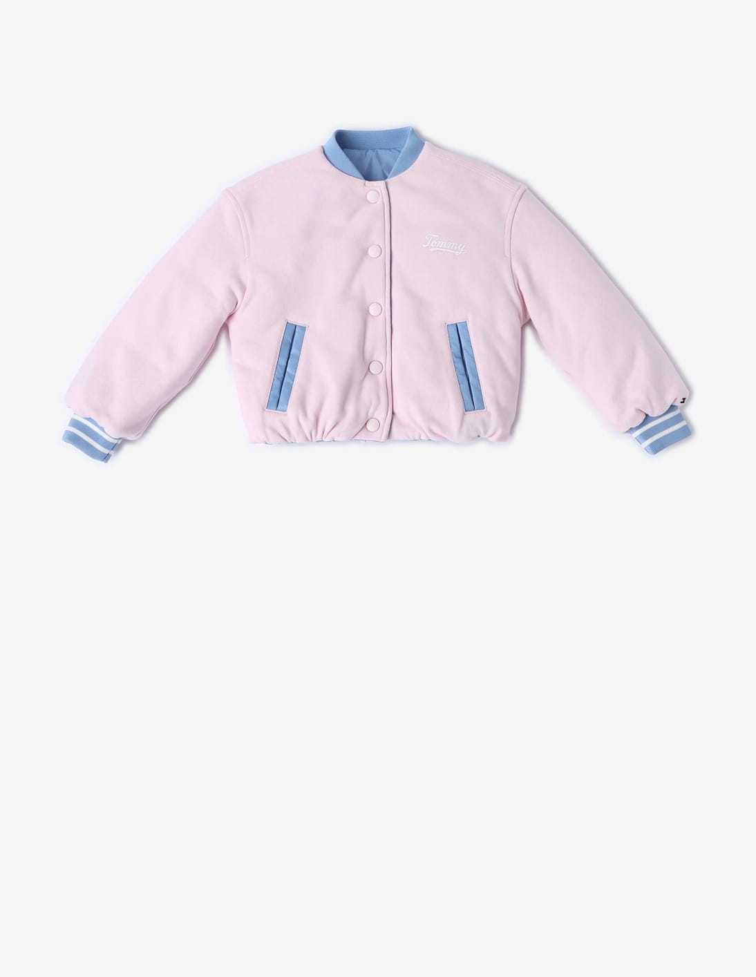 Girls Relaxed Fit Nylon Baseball Collar Puffer Jacket