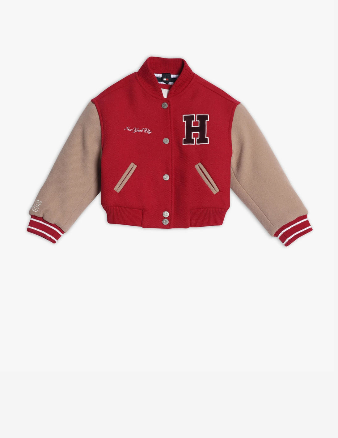 Girls Relaxed Fit Polyester Baseball Collar Bomber Jacket