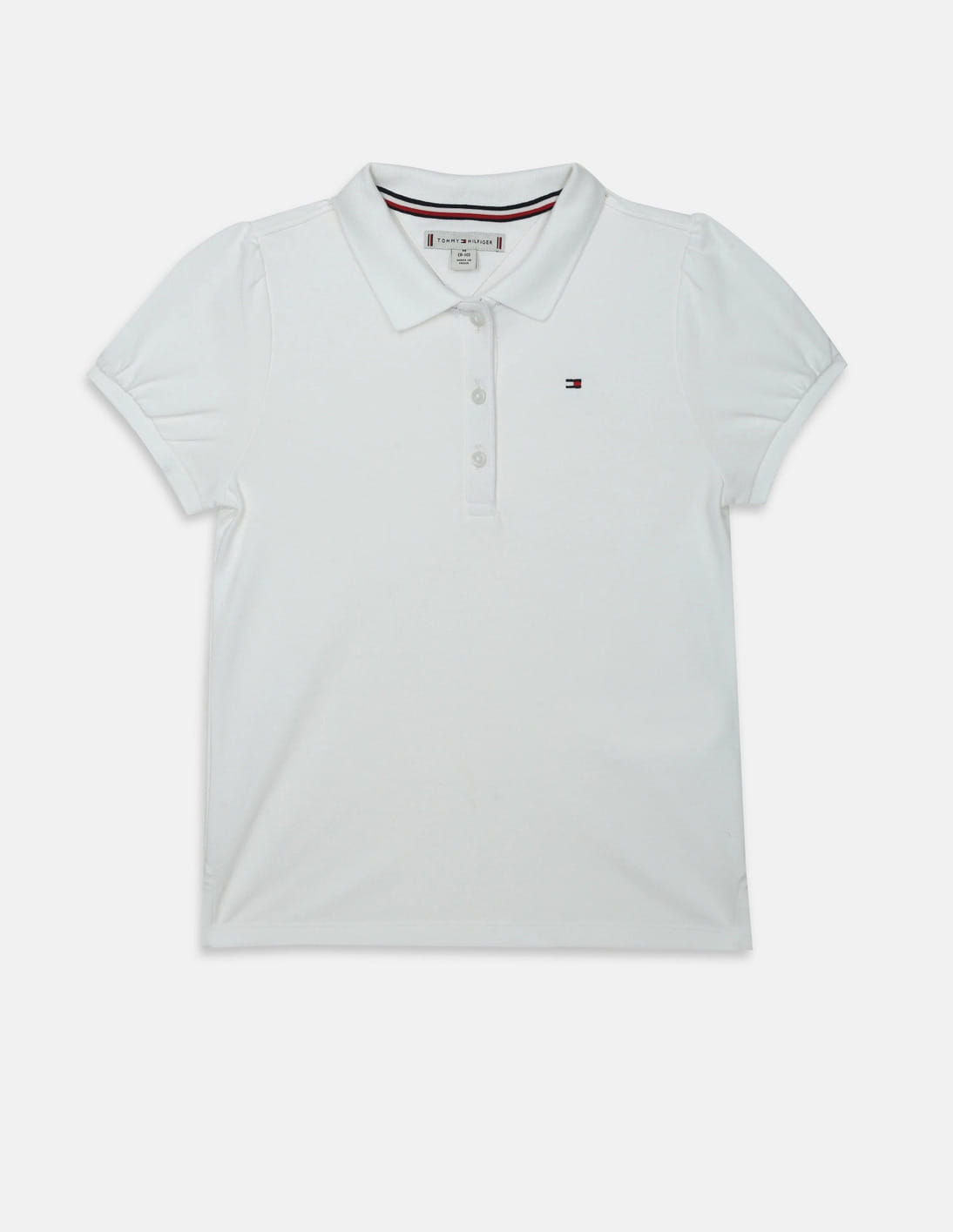 Girls Solid Regular Fit Cotton Polo T-Shirt