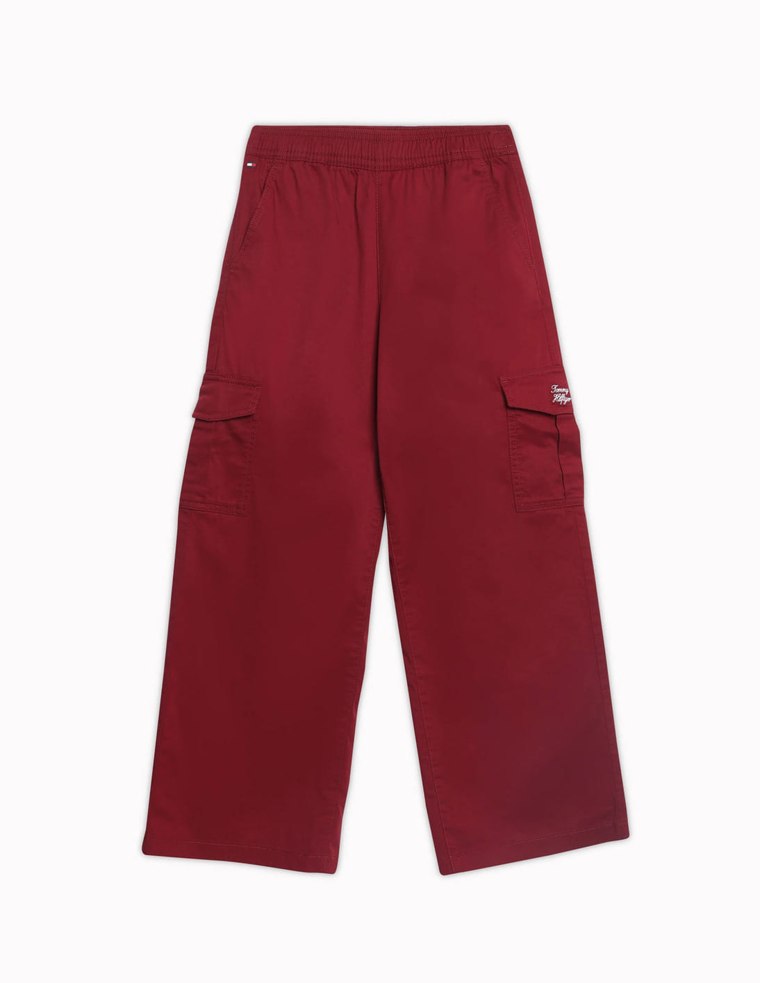 Girls Wide Leg Fit Solid Mid Rise Cargo
