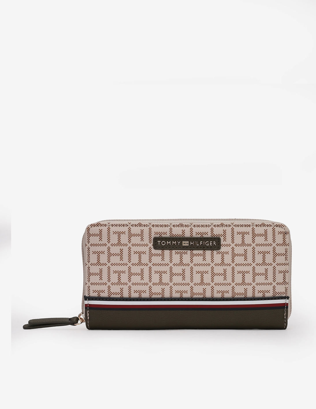 Logo Beige Polyester Zip Around Wallet