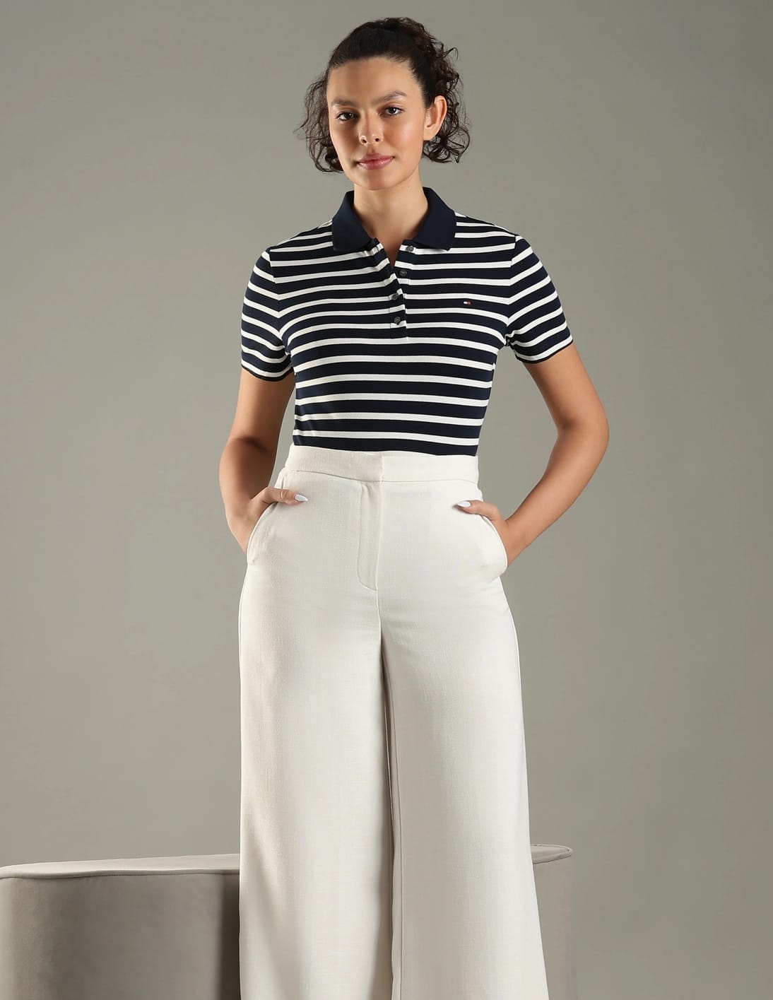 Logo Striped Slim Fit Cotton Polo T-Shirt