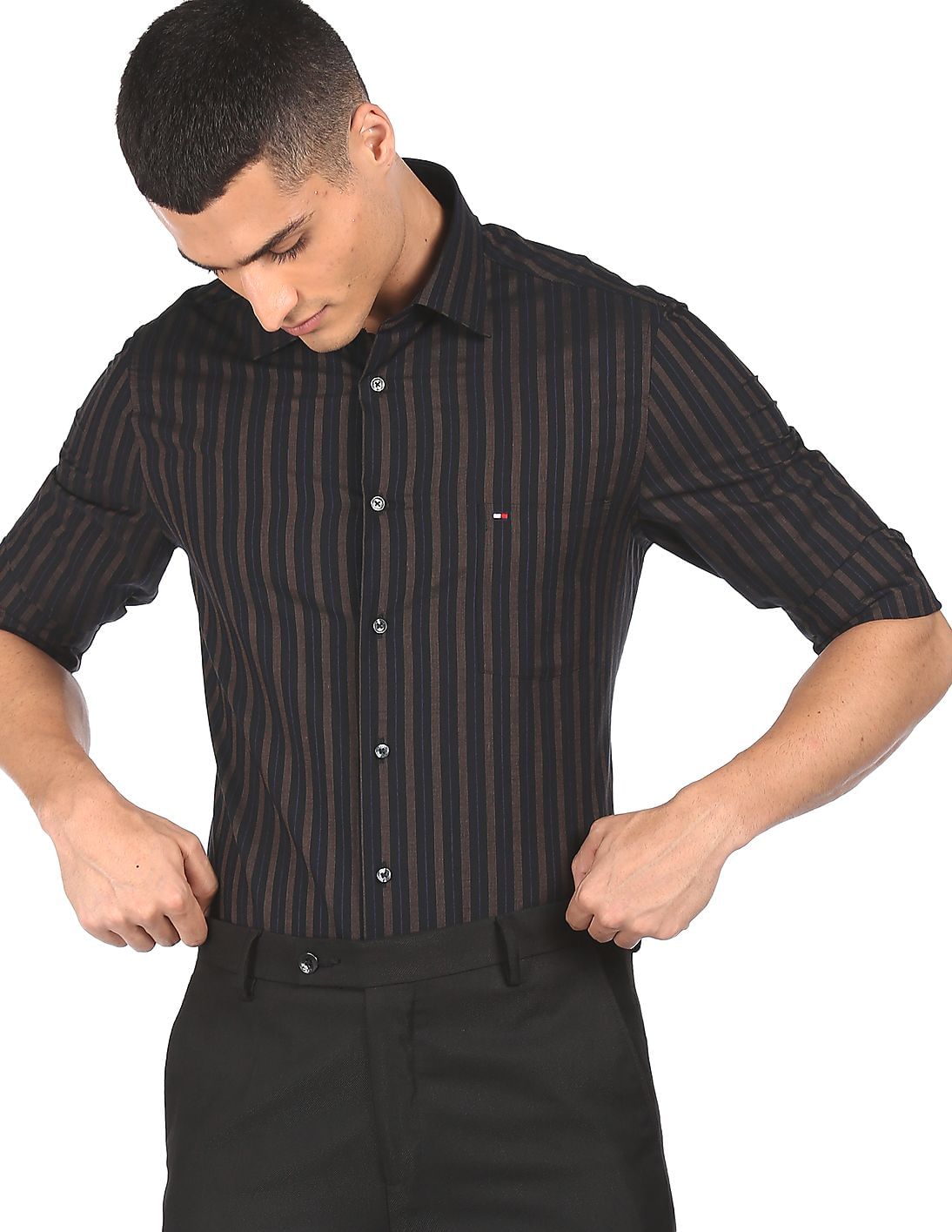 Men Black And Brown Grindle Stripe Smart Casual Shirt