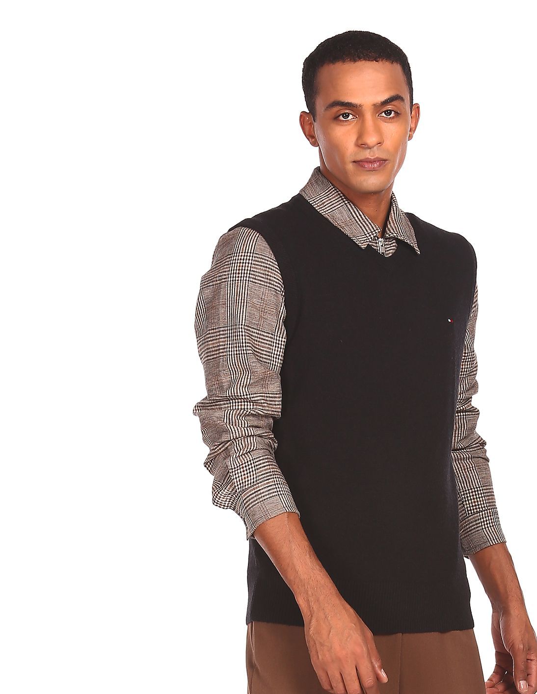 Men Black Sleeveless Lambswool V-Neck Sweater