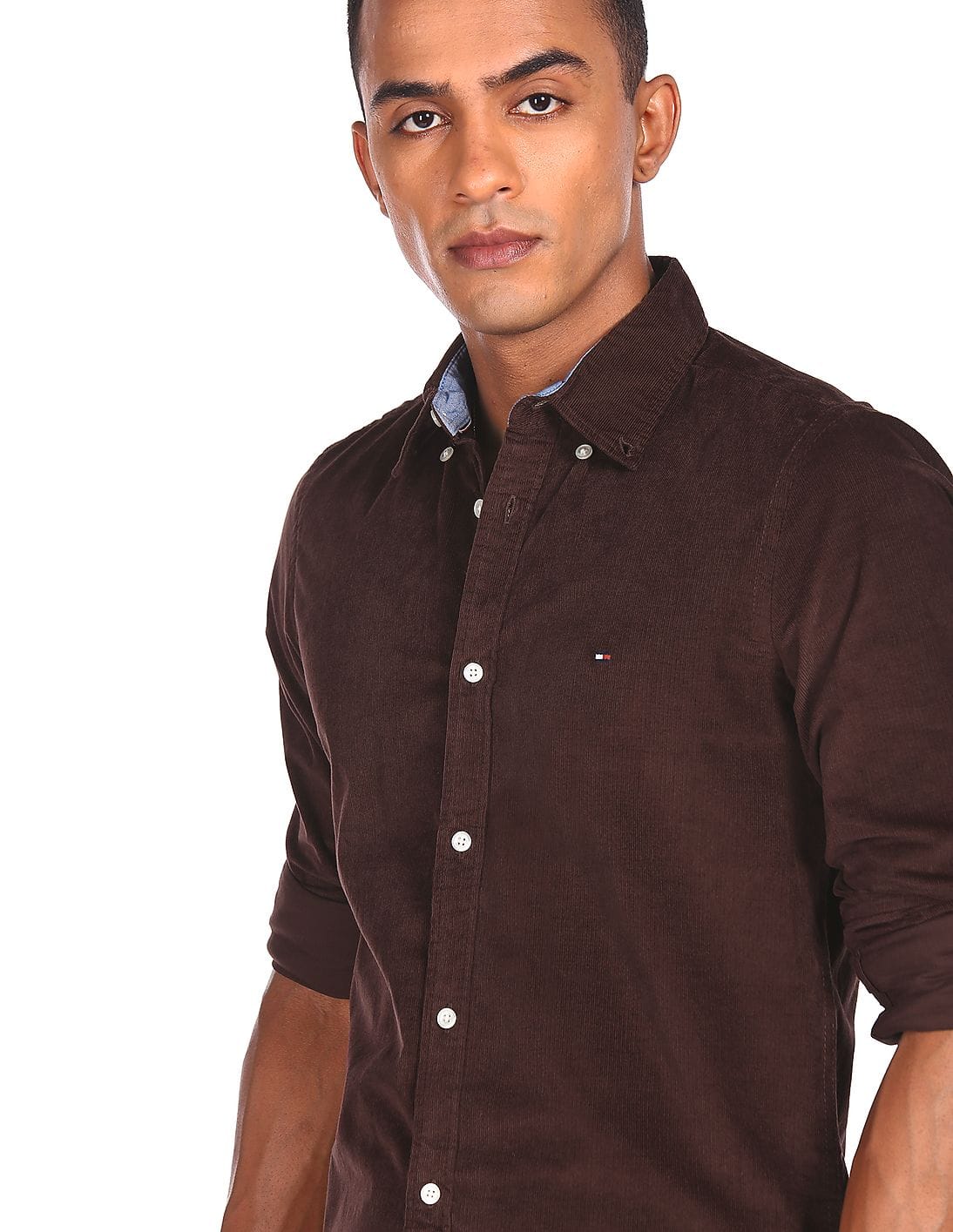 Men Brown Slim Fit Flex Corduroy Casual Shirt