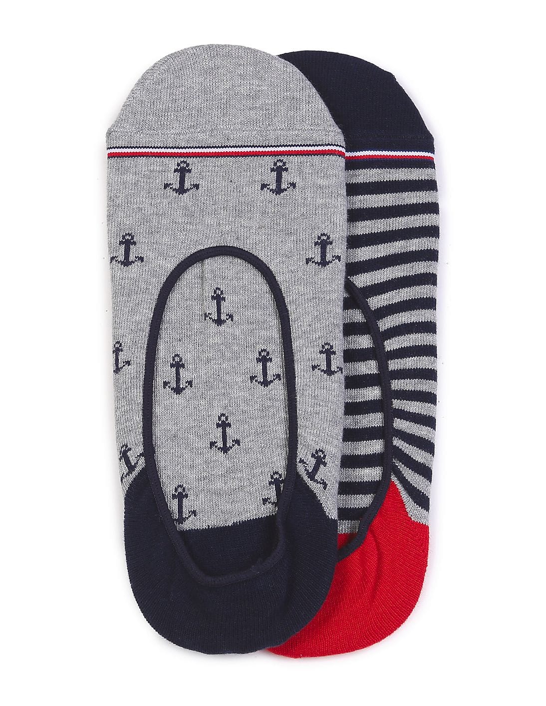 Men Grey Ben Anchor Critter No Show Socks - Pack Of 2