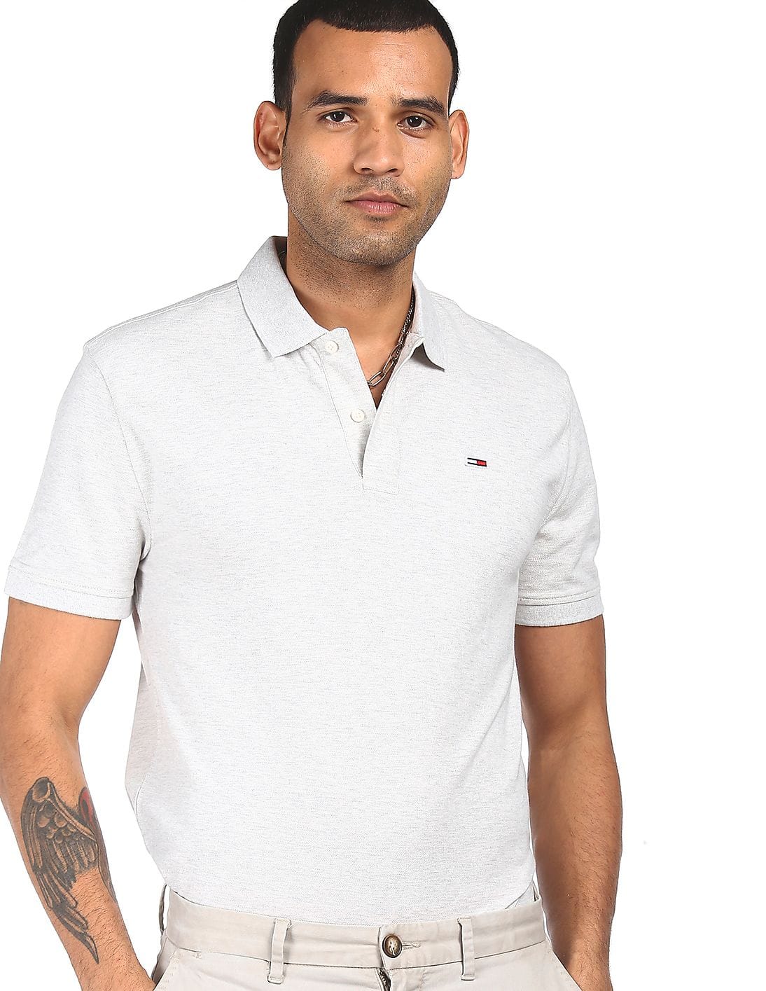 Men Grey Ribbed Collar Heathered Polo Shirt
