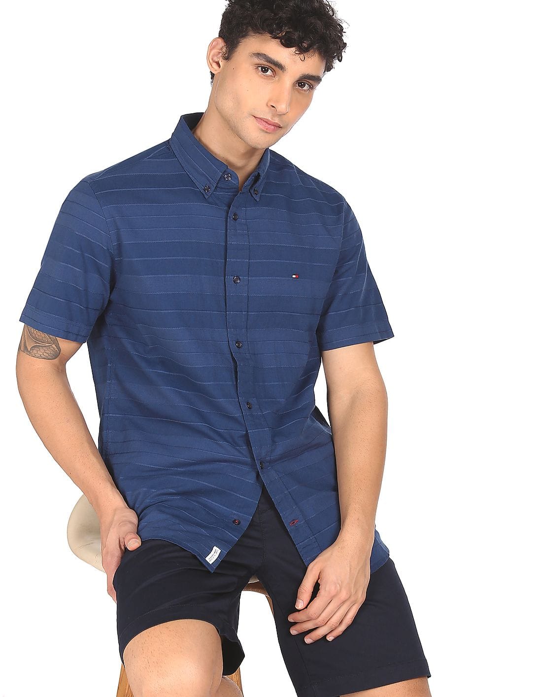Men Indigo Regular Fit Chambray Stripe Casual Shirt