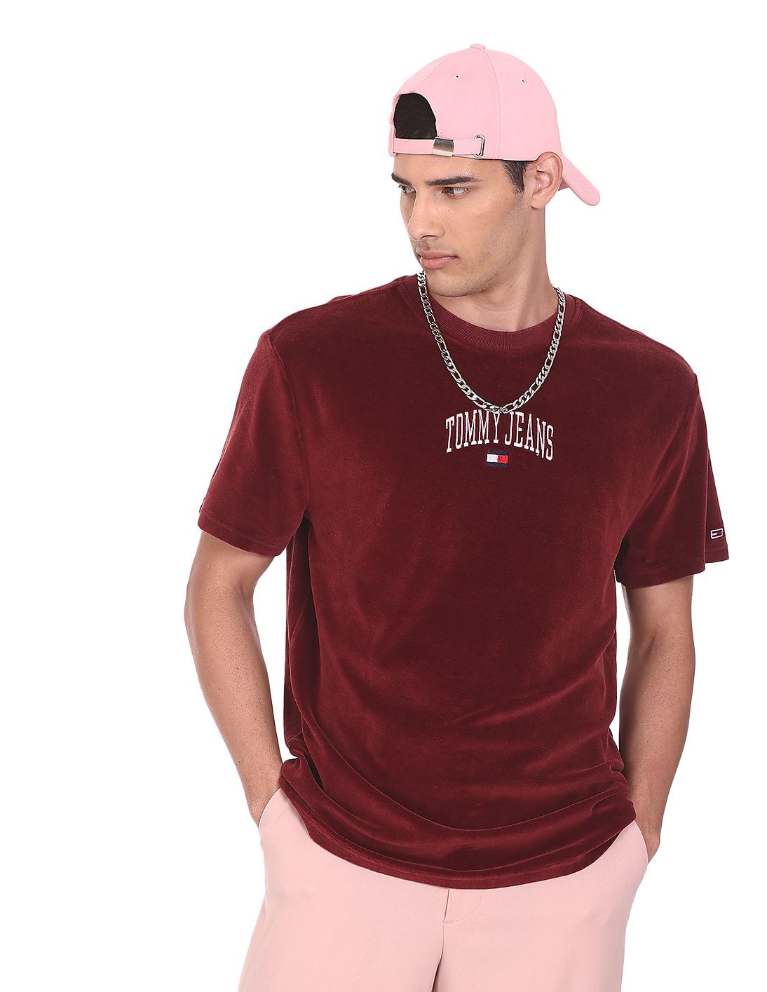 Men Maroon Classic Collegiate Cotton Velour T-Shirt