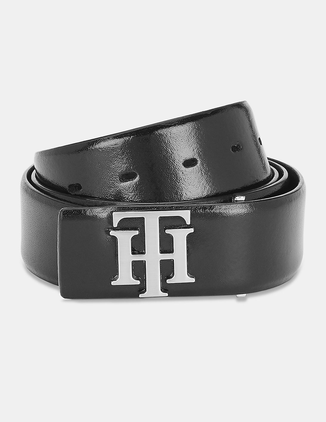 Men Black Non Reversible Formal Signature Buckle Leather Belt