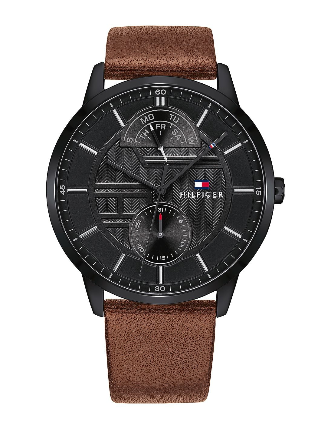 Men Brown And Black Textured Leather Strap Chronograph Watch