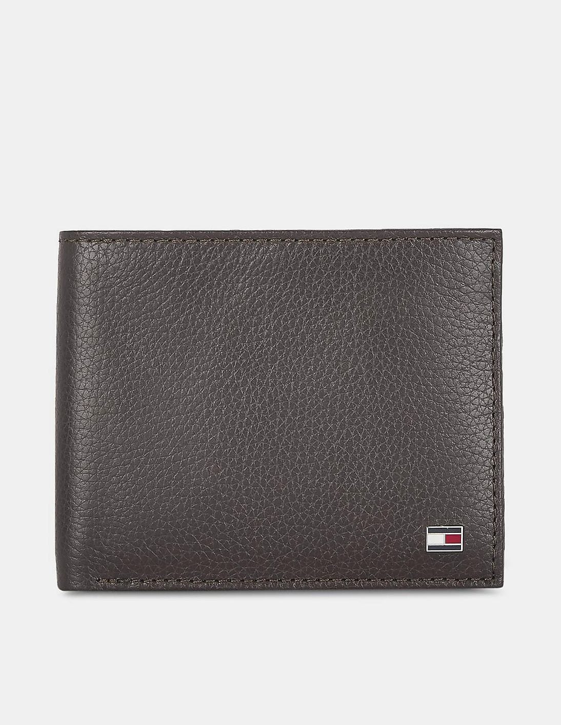 Men Dark Brown Fashion Oriented Pebble Grain Textured Leather Wallet