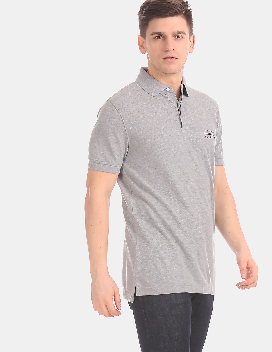 Men Grey Embroidered Logo Heathered Polo Shirt