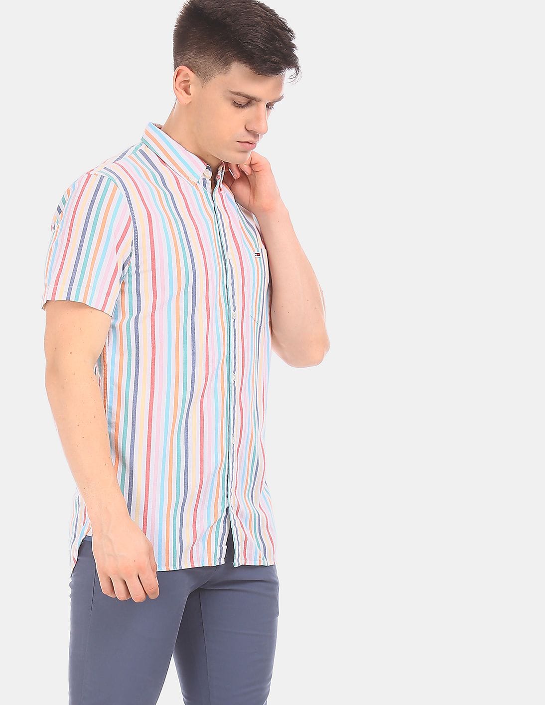 Men Multi Colour Short Sleeve Stripe Casual Shirt
