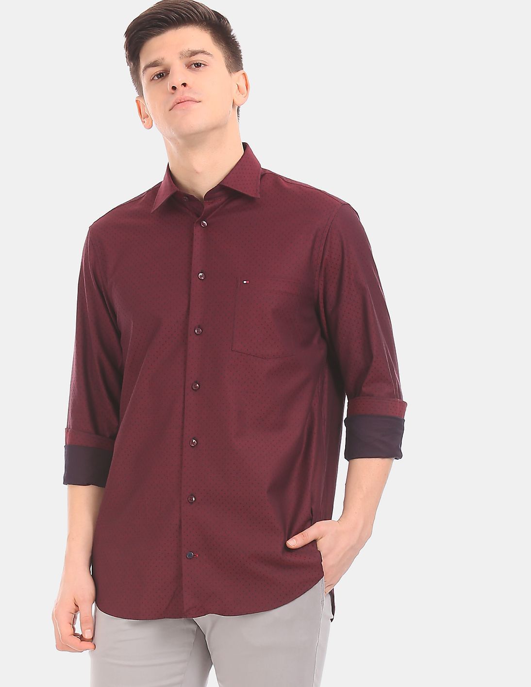 Men Red Long Sleeve Cotton Dobby Partywear Shirt