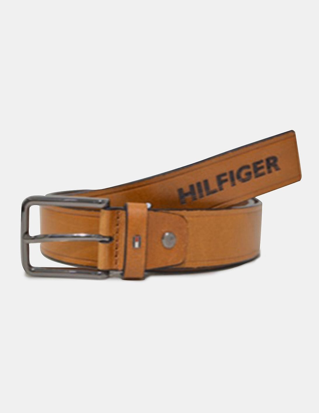 Men Tan Basic Prong Closure Leather Belt With Laser Tip