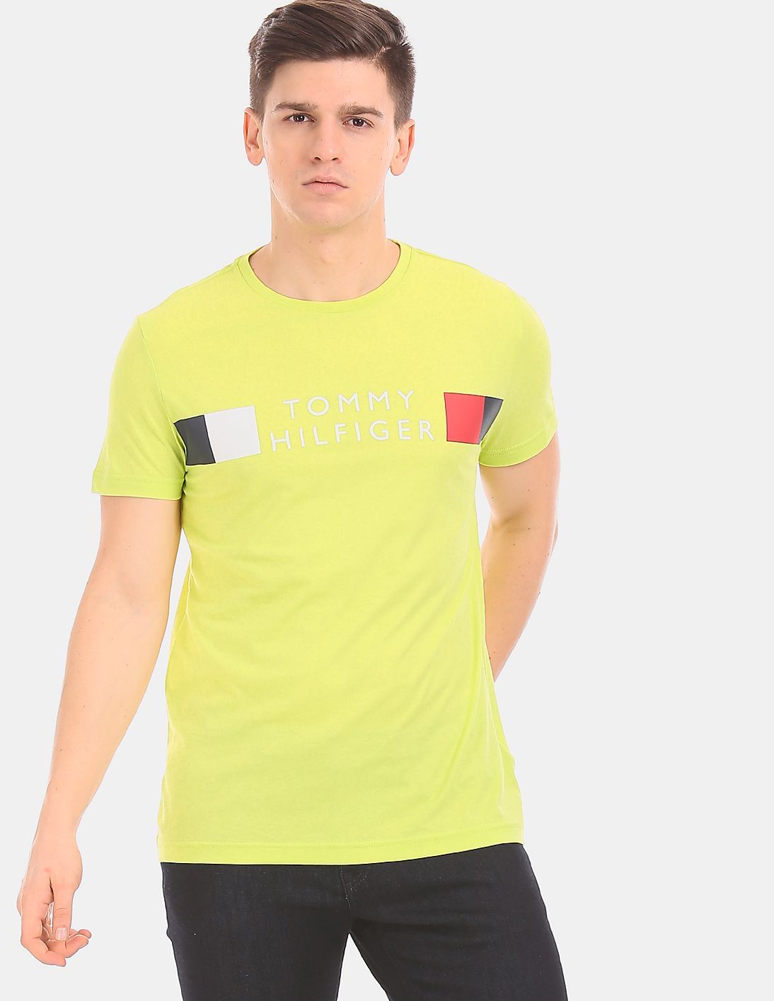 Men Yellow Brand Print Short Sleeve T-Shirt