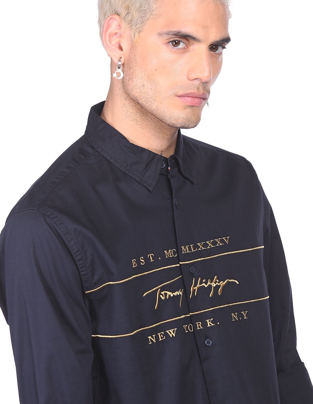 Men Navy Flex Brand Signature Embroidered Casual Shirt