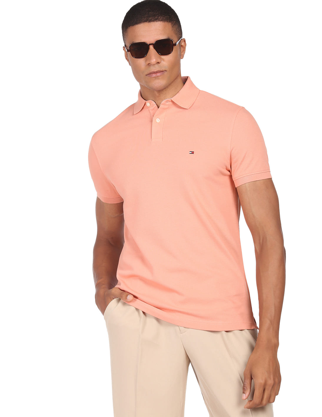 Men Peach Pique Solid Polo Shirt