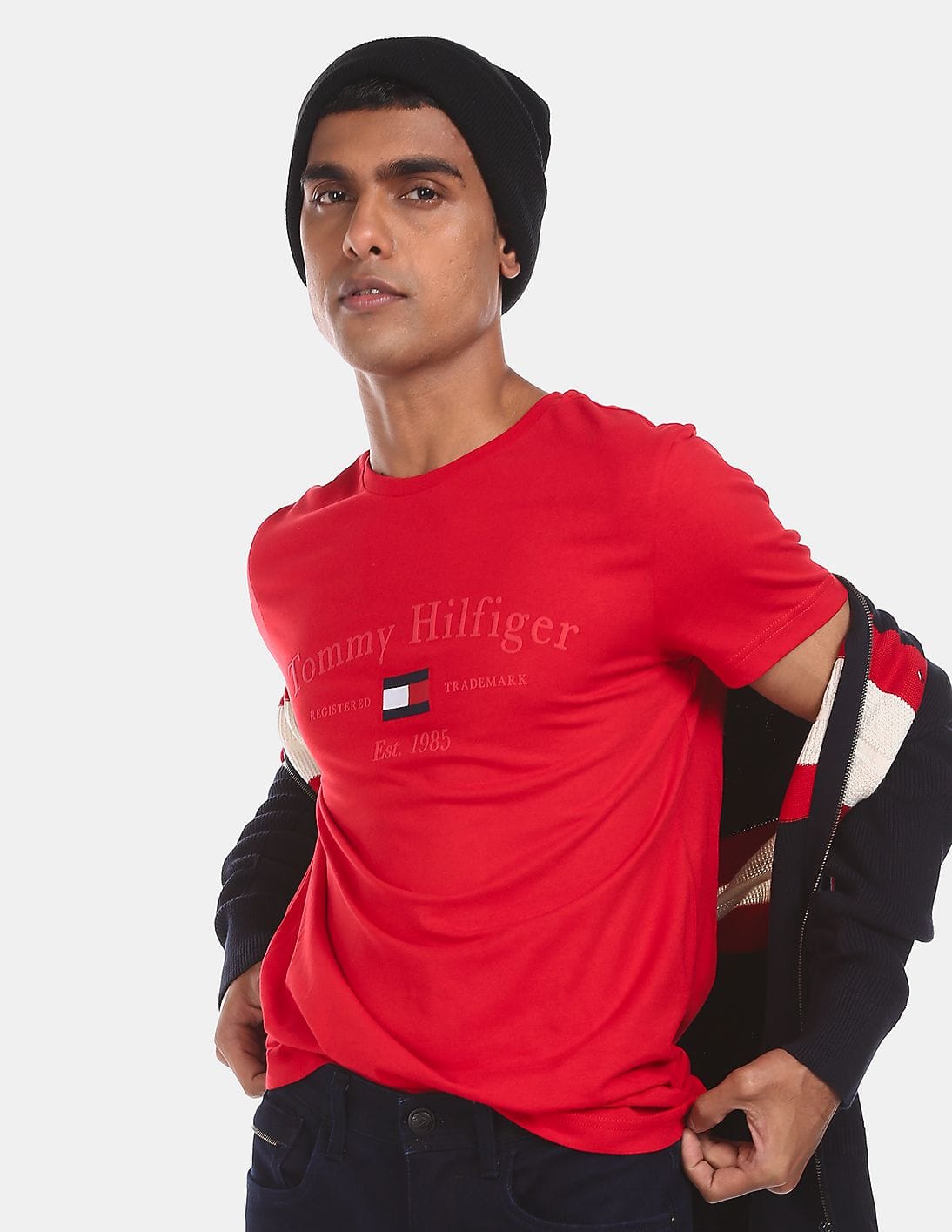 Men Red Crew Neck Brand Archive Graphic T-Shirt