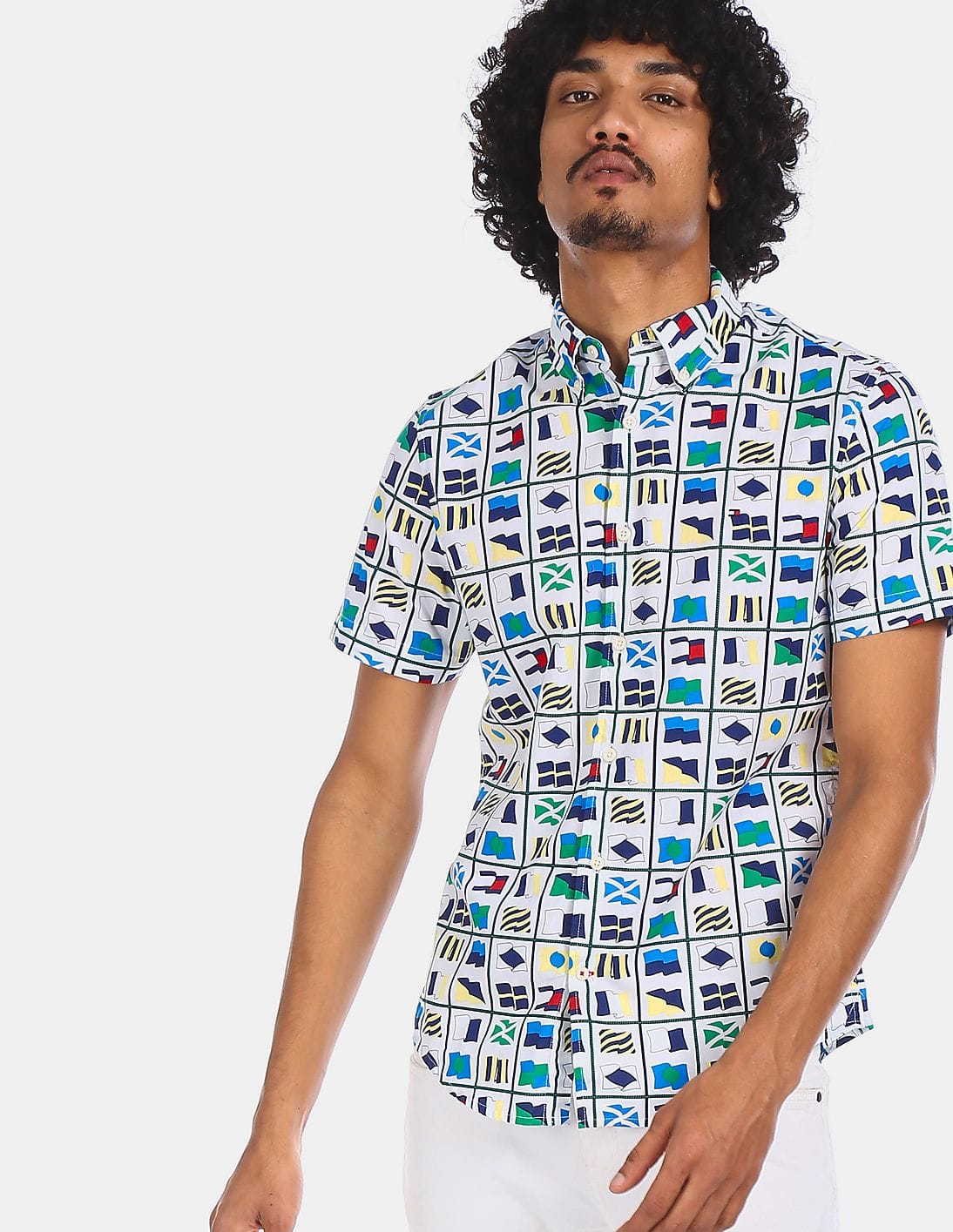 Men White Button Down Printed Casual Shirt