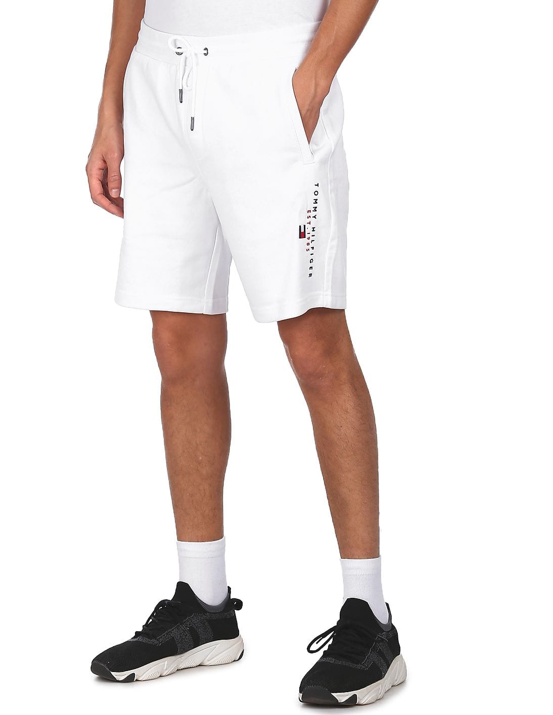 Men White Mid Rise Solid Sweatshorts
