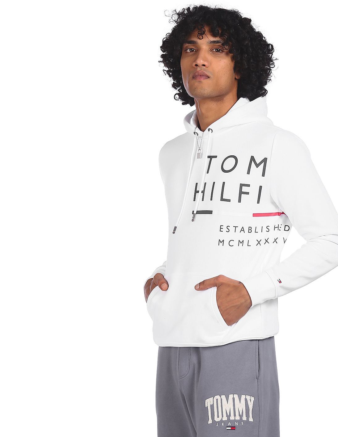Men White Wrap Around Graphic Hooded Sweatshirt