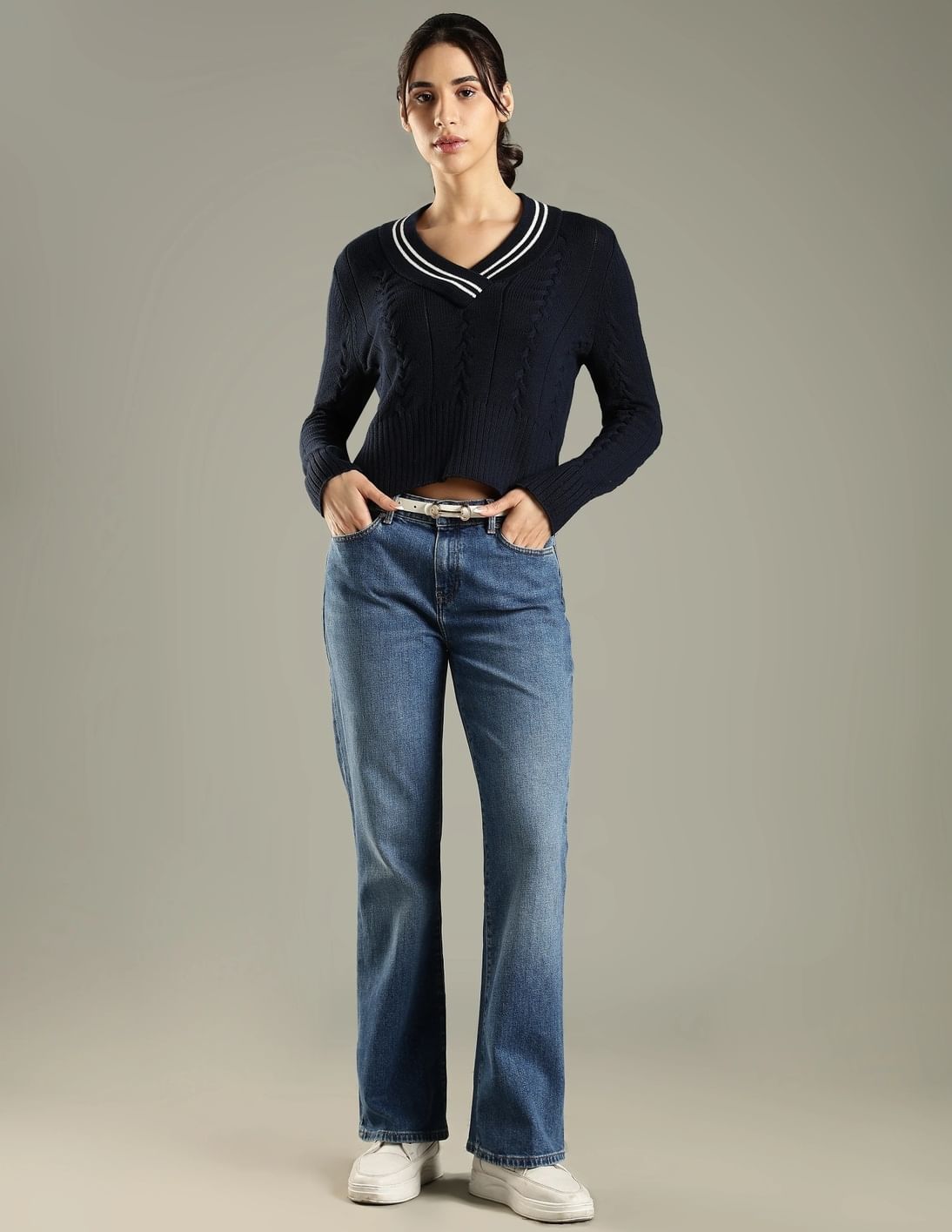 Mid-Wash Flared Fit Mid Rise Jeans