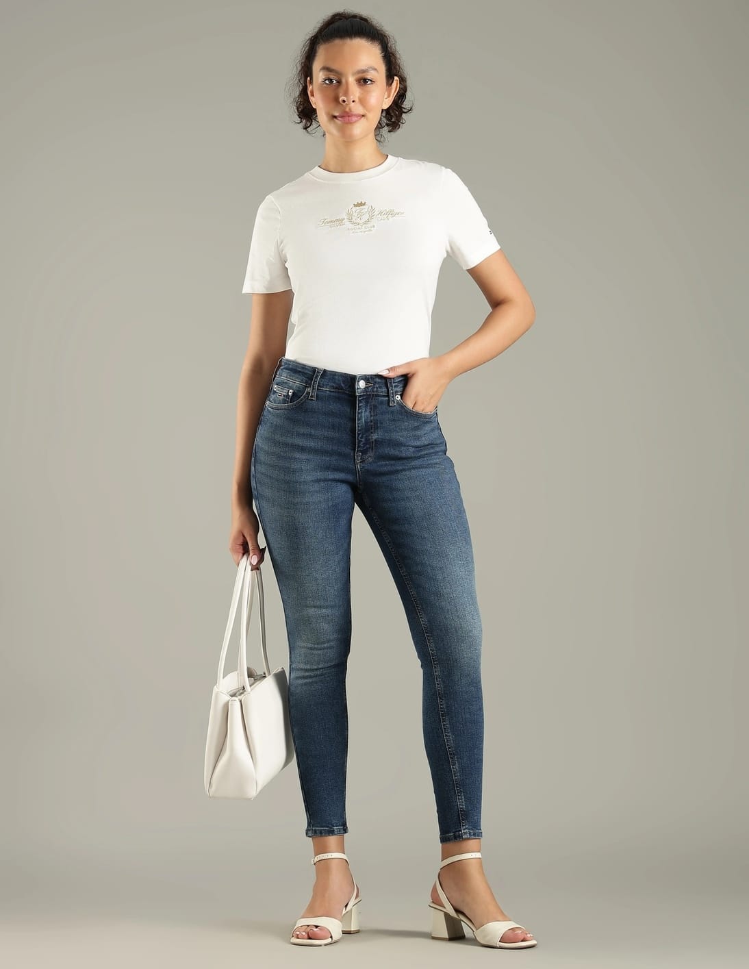 Mid-Wash Skinny Fit Mid Rise Jeans
